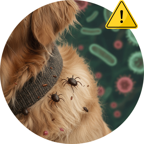 Every year, 1 in 3 dogs is affected by ticks or fleas. These parasites don’t just cause constant itching — they spread dangerous diseases like Lyme and ehrlichiosis. Chemical collars? They often trigger allergies, skin burns, or worse. Your dog deserves better.